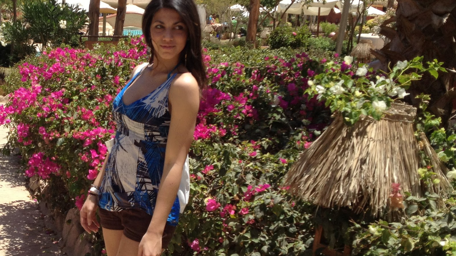 The beach look that I adopted recalls the idea of the safari, one in linen shorts colro ciccolato Vero Moda combined with a top with fantasies triblai playing on the colors of cream, brown and blue ocean Pinko. Even earrings evoke the idea with reasons spotted pierte and turquoise.