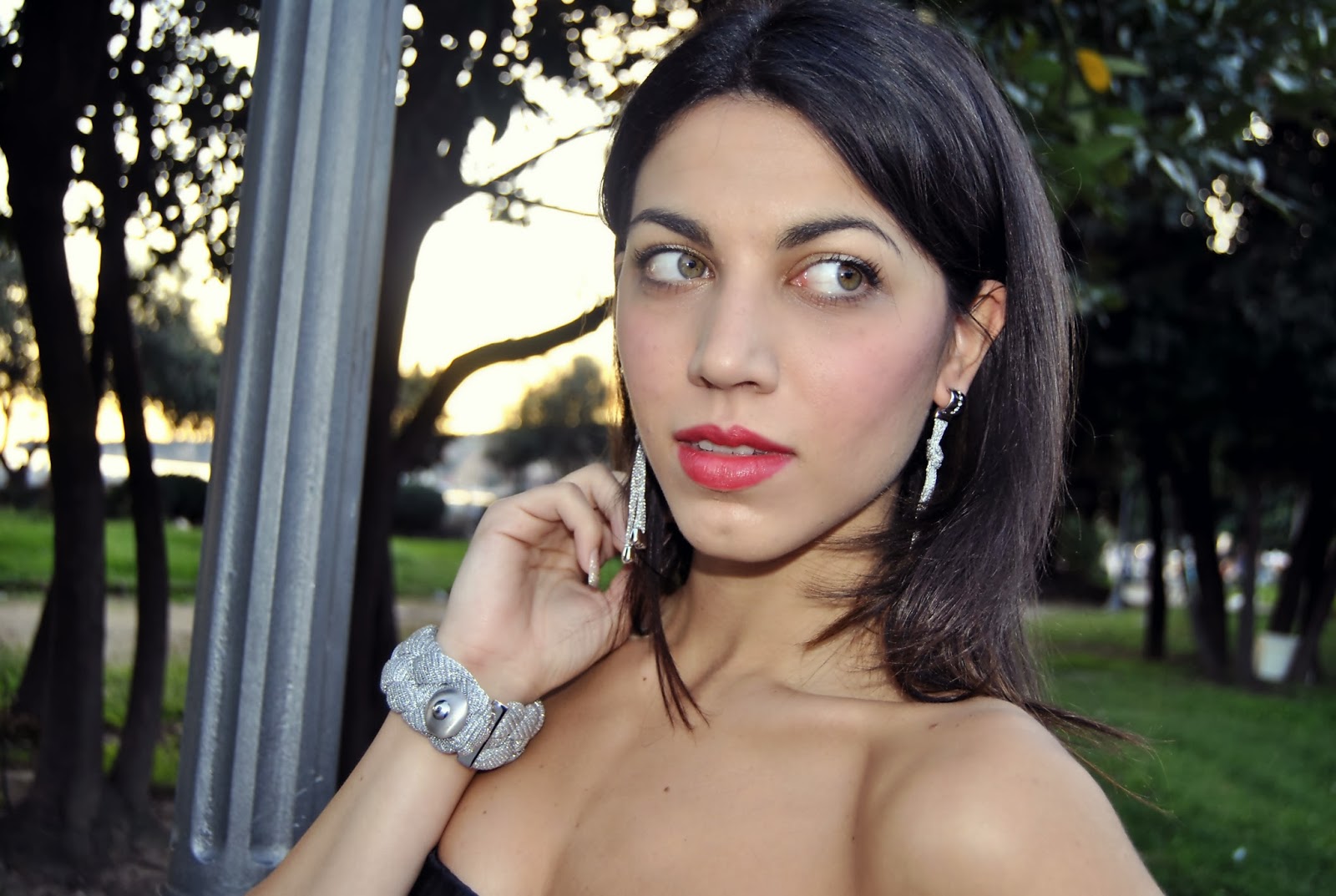 Il coordinato bracciale con orecchini, disponibile in silver e gold, non ricadono nella banalità di un classico completo, ma reinventano l’eleganza con l’utilizzo di una maglia intrecciata per il bracciale e lunghi pendenti con dettagli in swarovski.