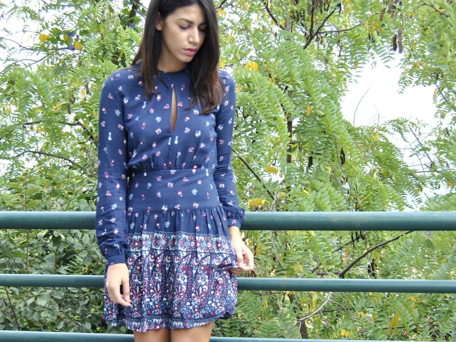 Il parka è davvero molto versatile, comodo e caldo. L’appeal iniziale è quello di un capo estremamente sportivo, ma a me piace indossarlo anche in modo differente, abbinandolo ad abiti o gonne. Lo stile di quest’outfit è in perfetto tema British e si denota subito il carattere di Pepe Jeans in ogni dettaglio! Femminilità, originalità e versatilità sono i 3 punti di forza del brand. Ho indossato un abito blu con micro fantasie paisley in bordeaux e toni chiari che ha una scollatura a goccia sul d’avanti ed una vestibilità perfetta perché mette in evidenza il punto vita ed ha una lunghezza perfetta, che slancia ulteriormente la figura. In abbinamento un paio di oxford bordeaux con dettaglio metallico sulla punta ed ovviamente, in tono, il parka!